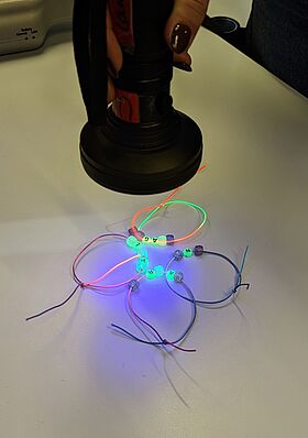 Visitors explored the world of intelligent materials. Those that we develop in our laborotories... but also those that are already part of our everyday lives. The composition of such materials — often involving macromolecules and polymers — was illustrated using beads and chains.